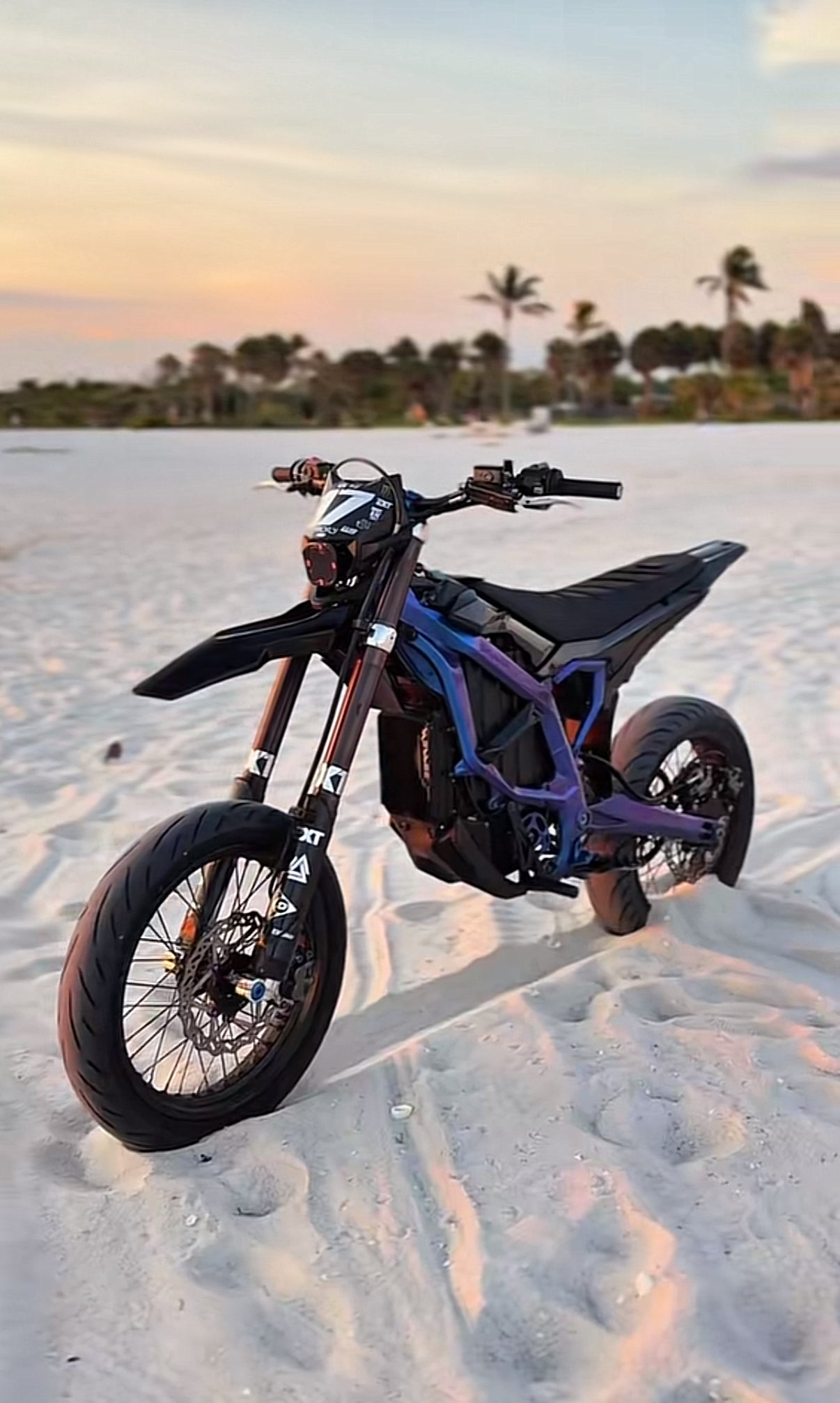 Introducing the Genuine Ultra Bee Supermoto Kit. Our comprehensive kit includes front and rear brake discs with sensor gears, rear sprocket, and chain, offering a seamless integration onto your bike.